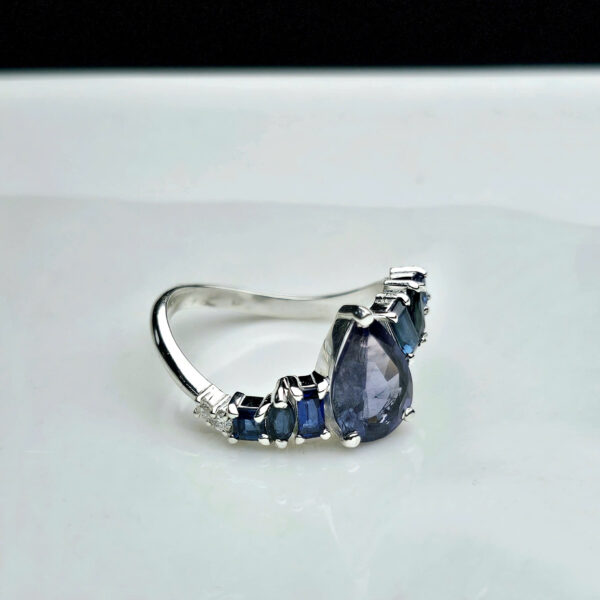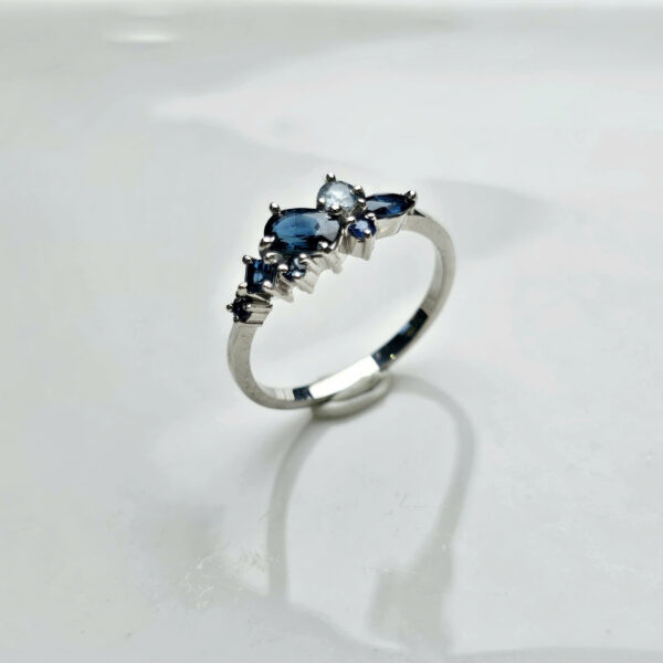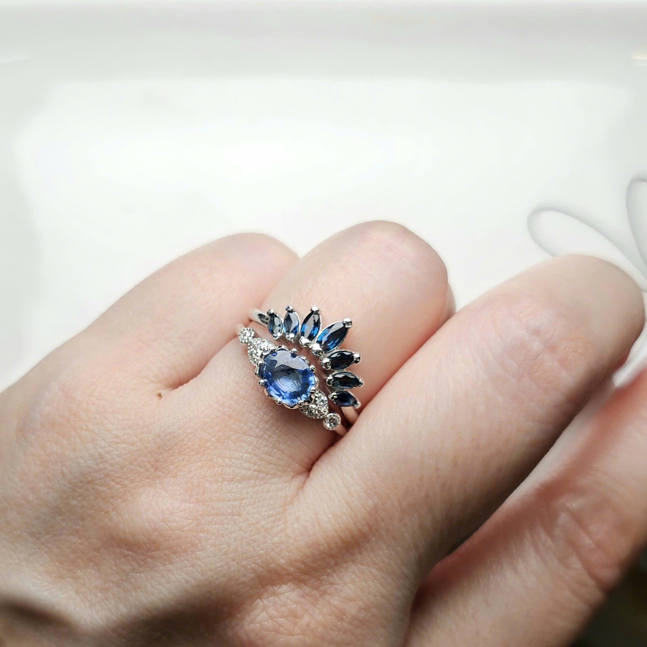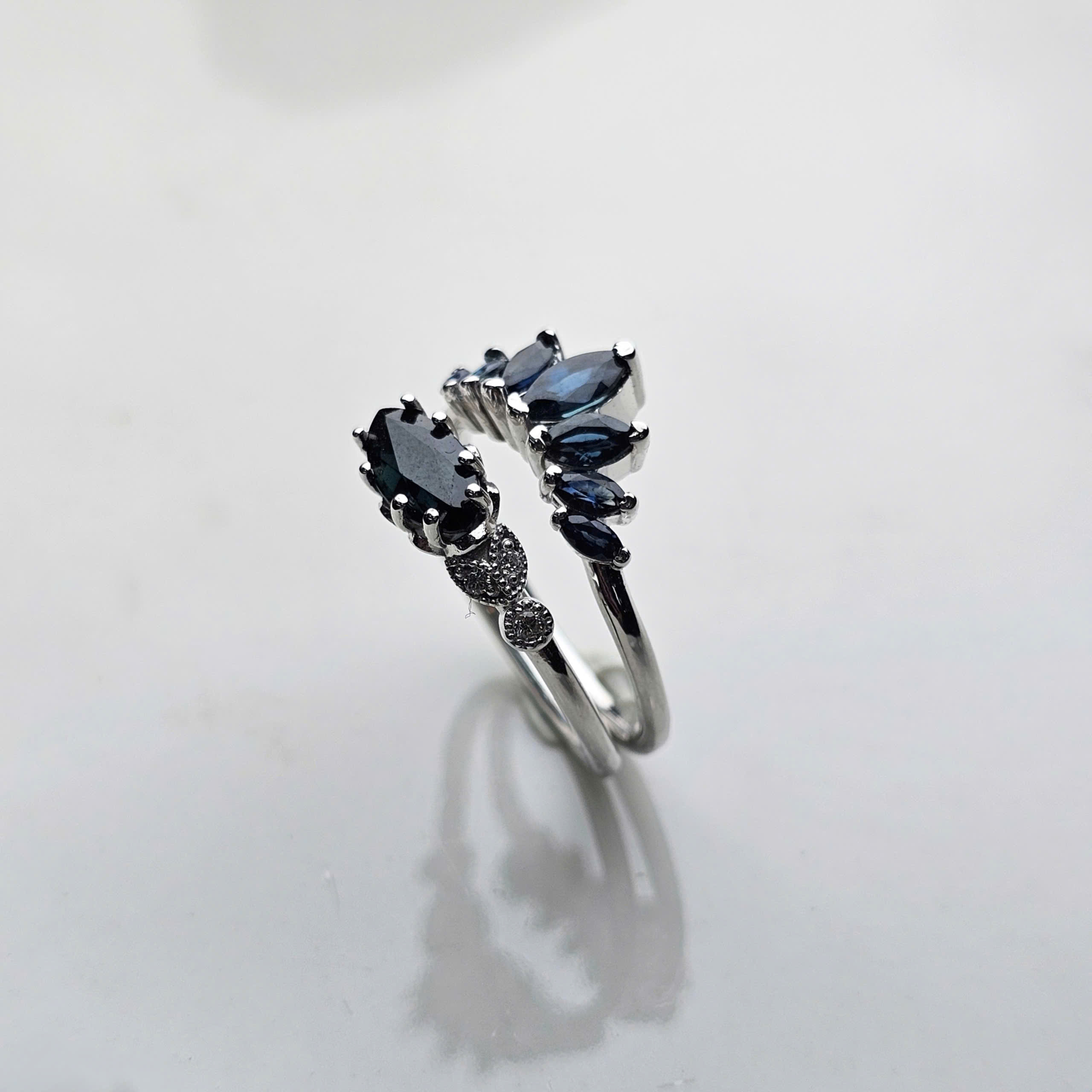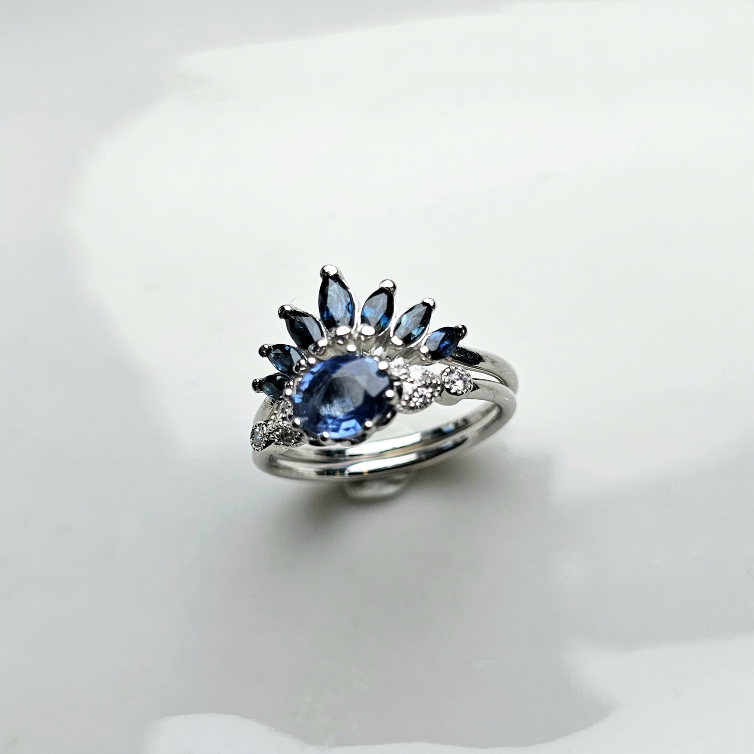 Cặp nhẫn Sapphire bạc. Có thể deo tách riêng từng chiếc hoặc đeo cả cặp. Một sự kết hợp từ đơn giản thành thành điệu đà, lộng lẫy. Có thể chỉnh size nhẫn.