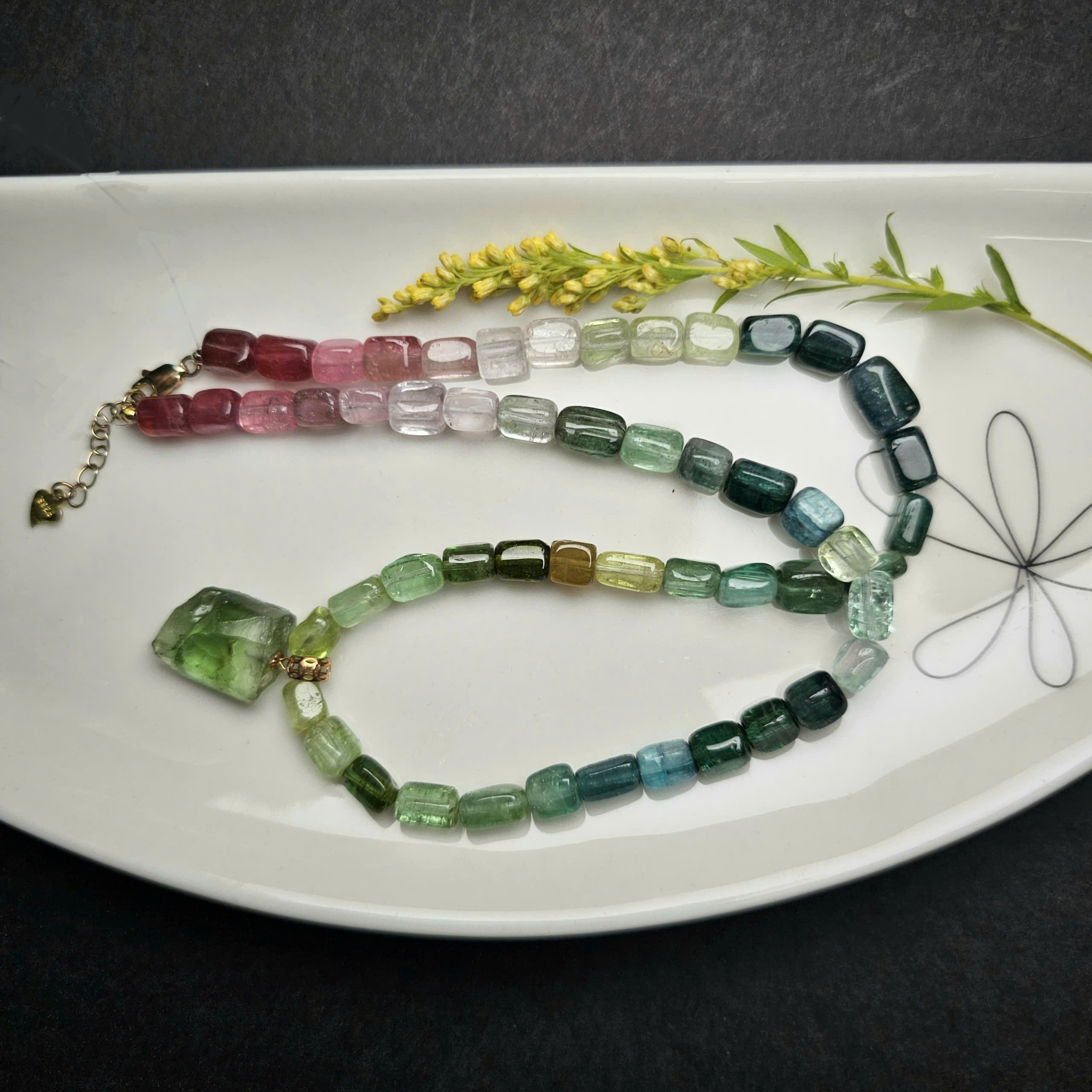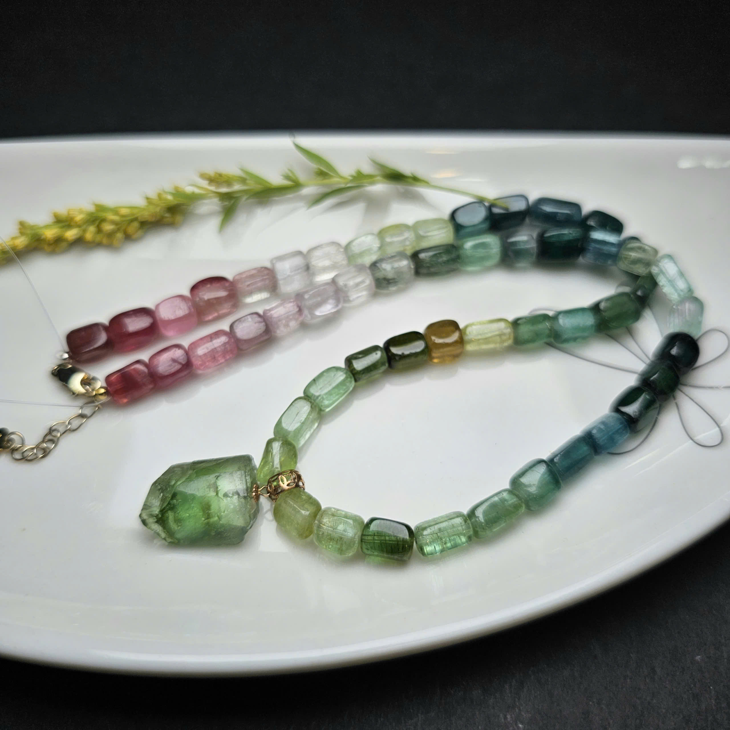 Chuỗi cổ kèm mặt dây Tourmaline. Mặt dây vàng 18k