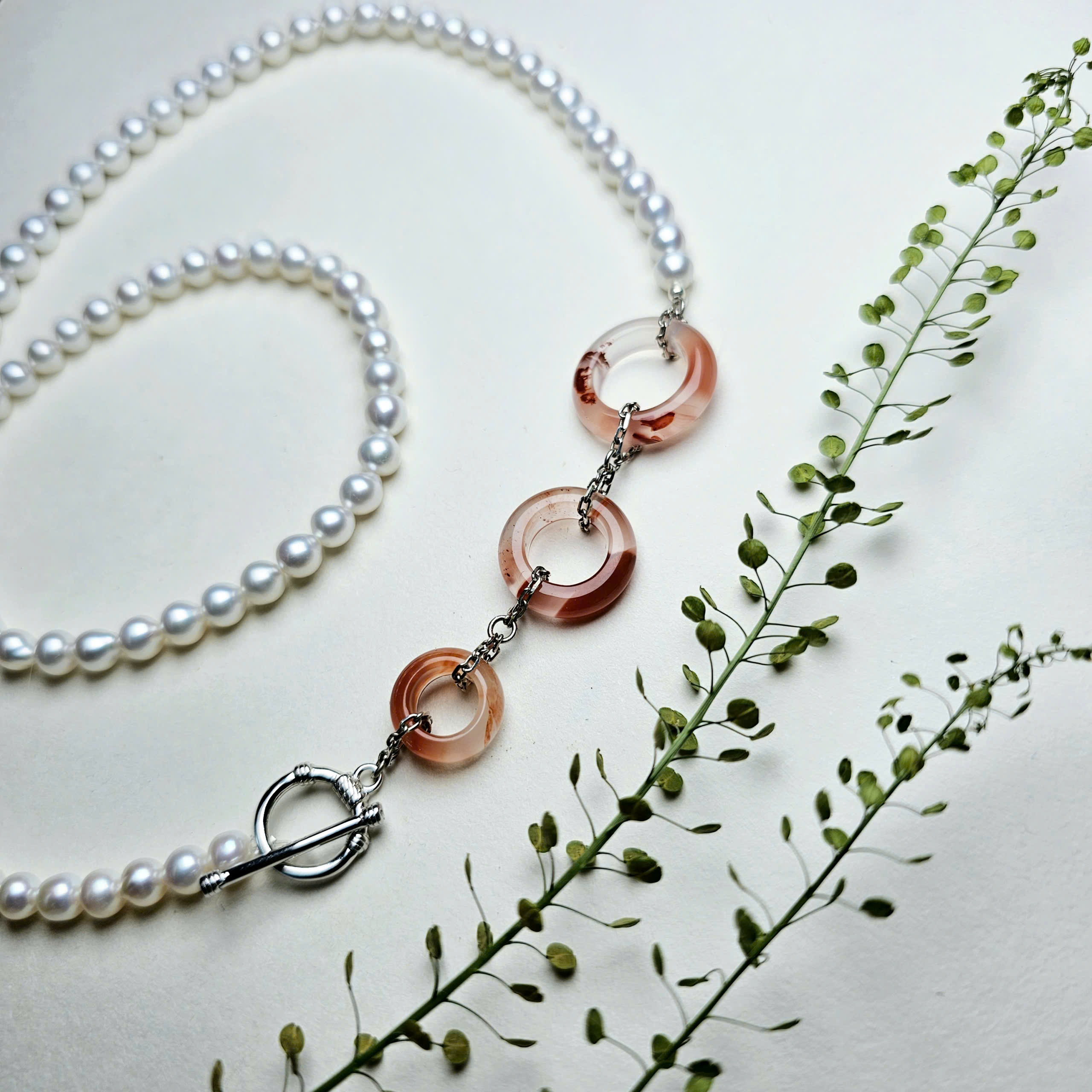 Chuỗi cổ ngọc trai nước ngọt mix khấu Nam hồng.
