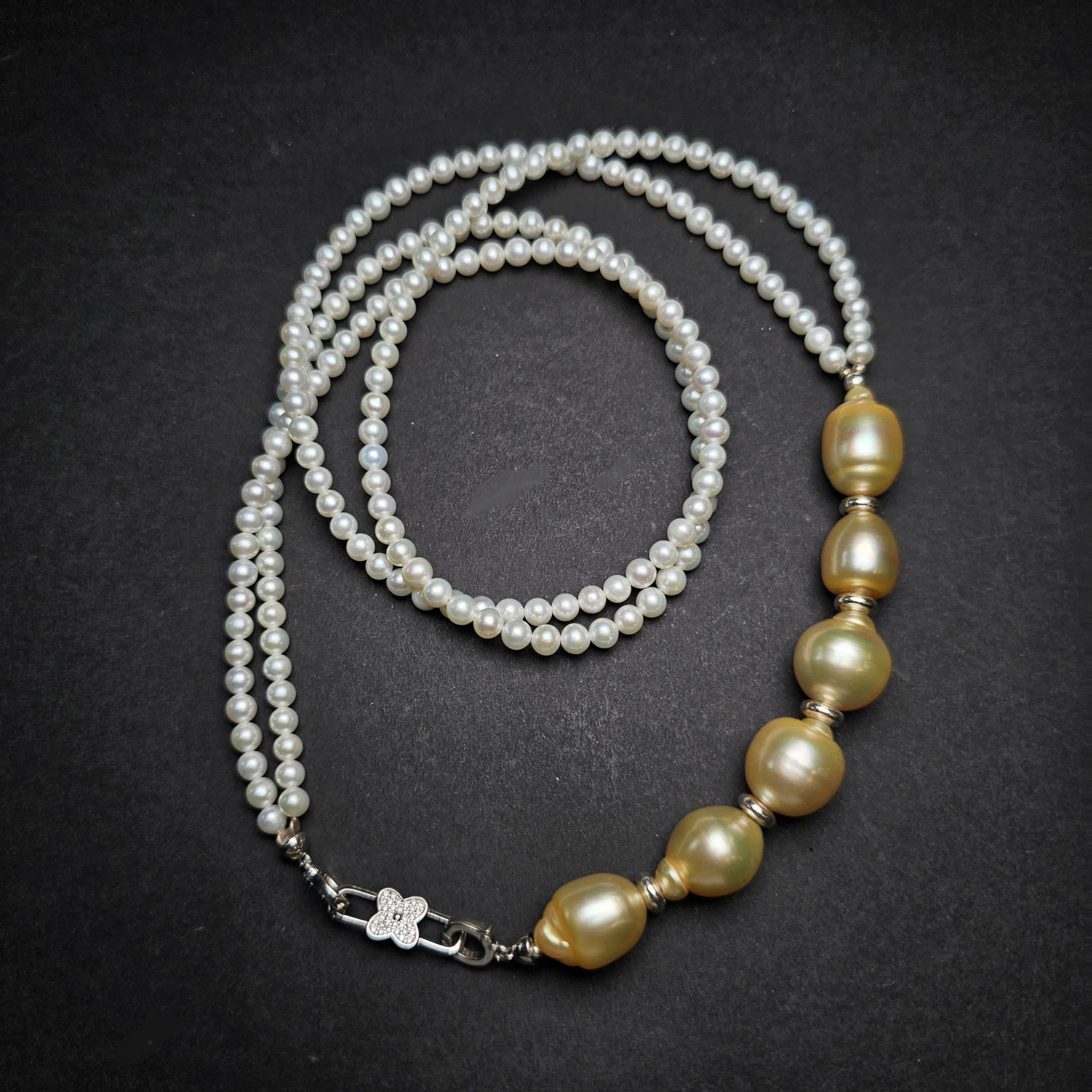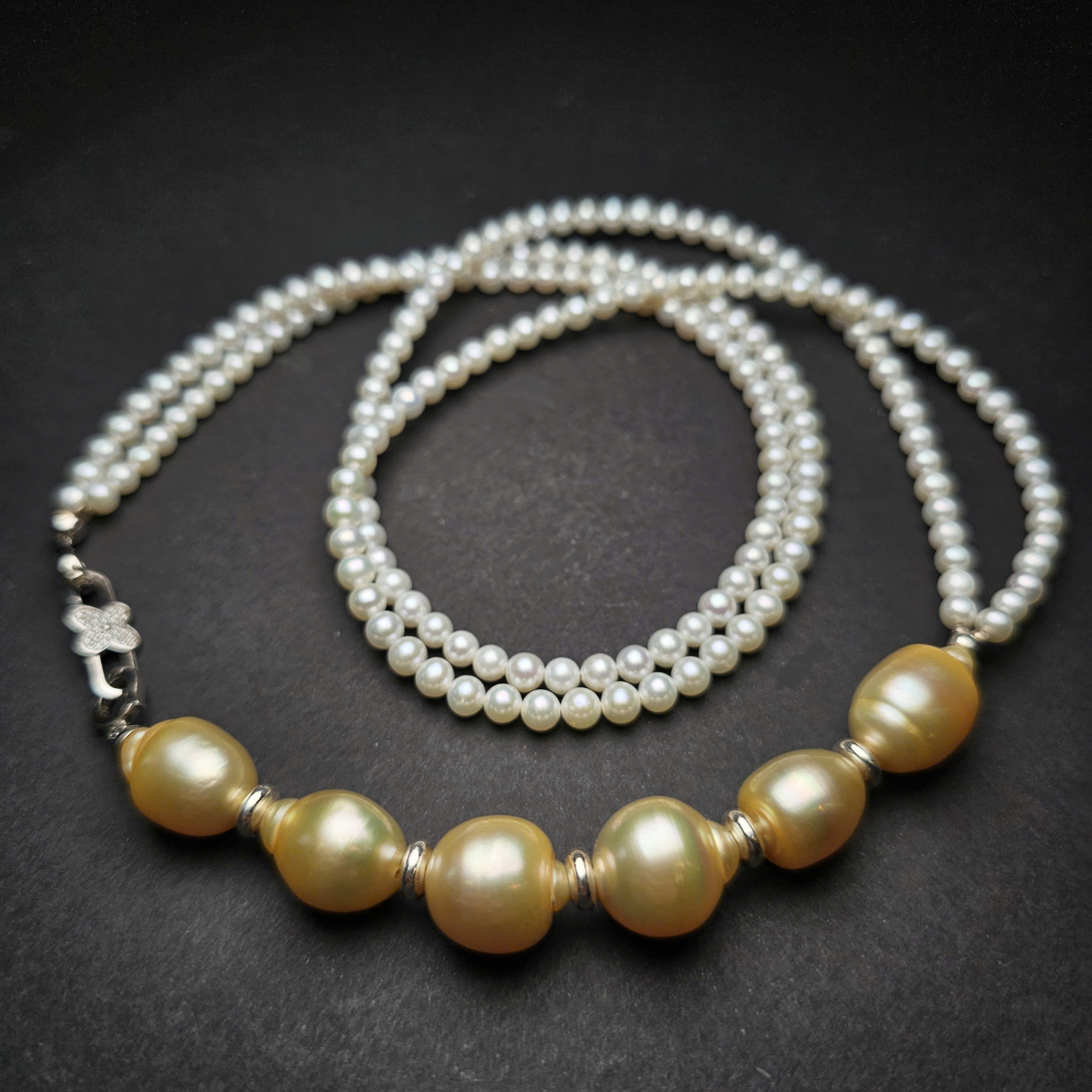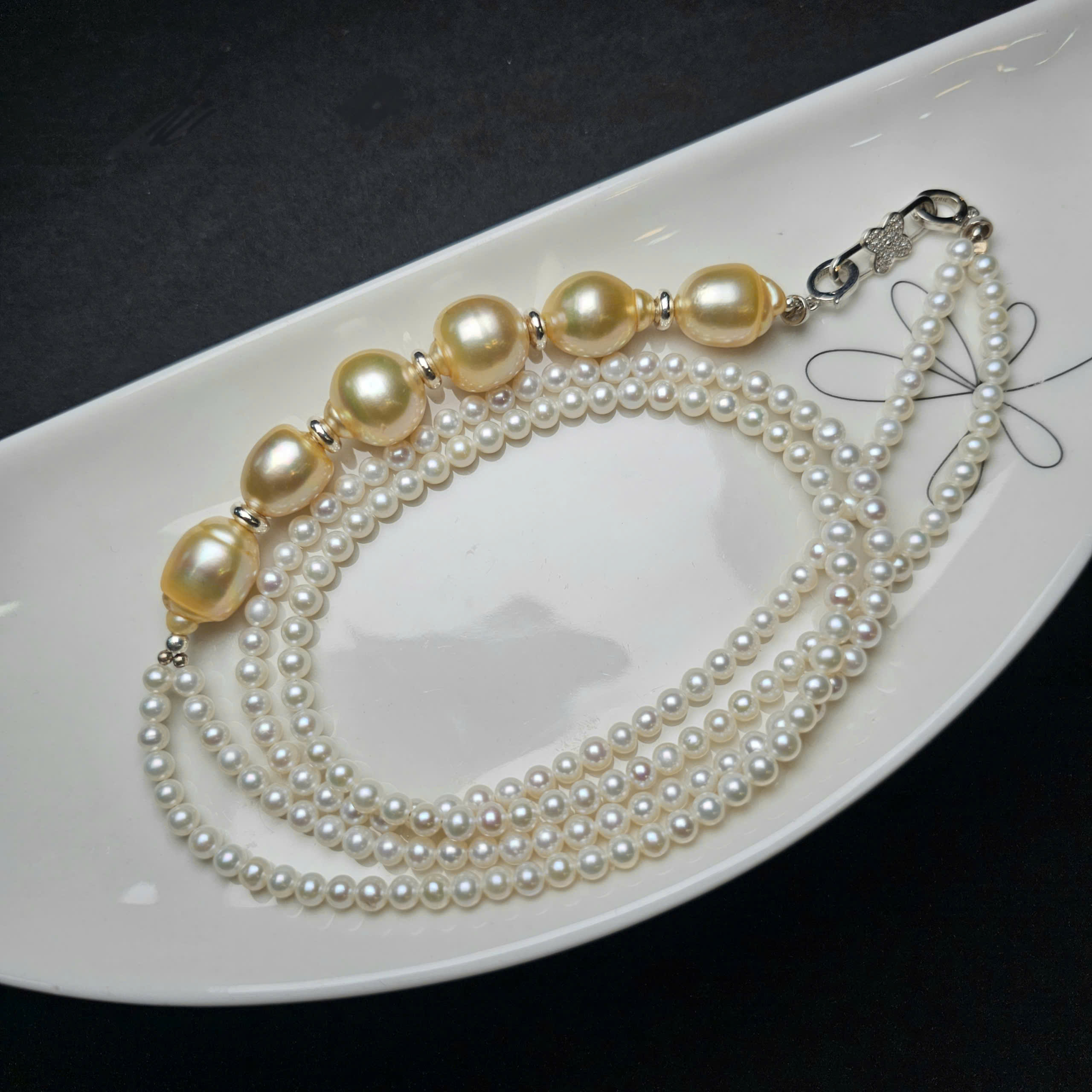 Chuỗi cổ Ngọc trai Southsea vàng mix ngọc trai nhí nước ngọt, khóa bạc S925.