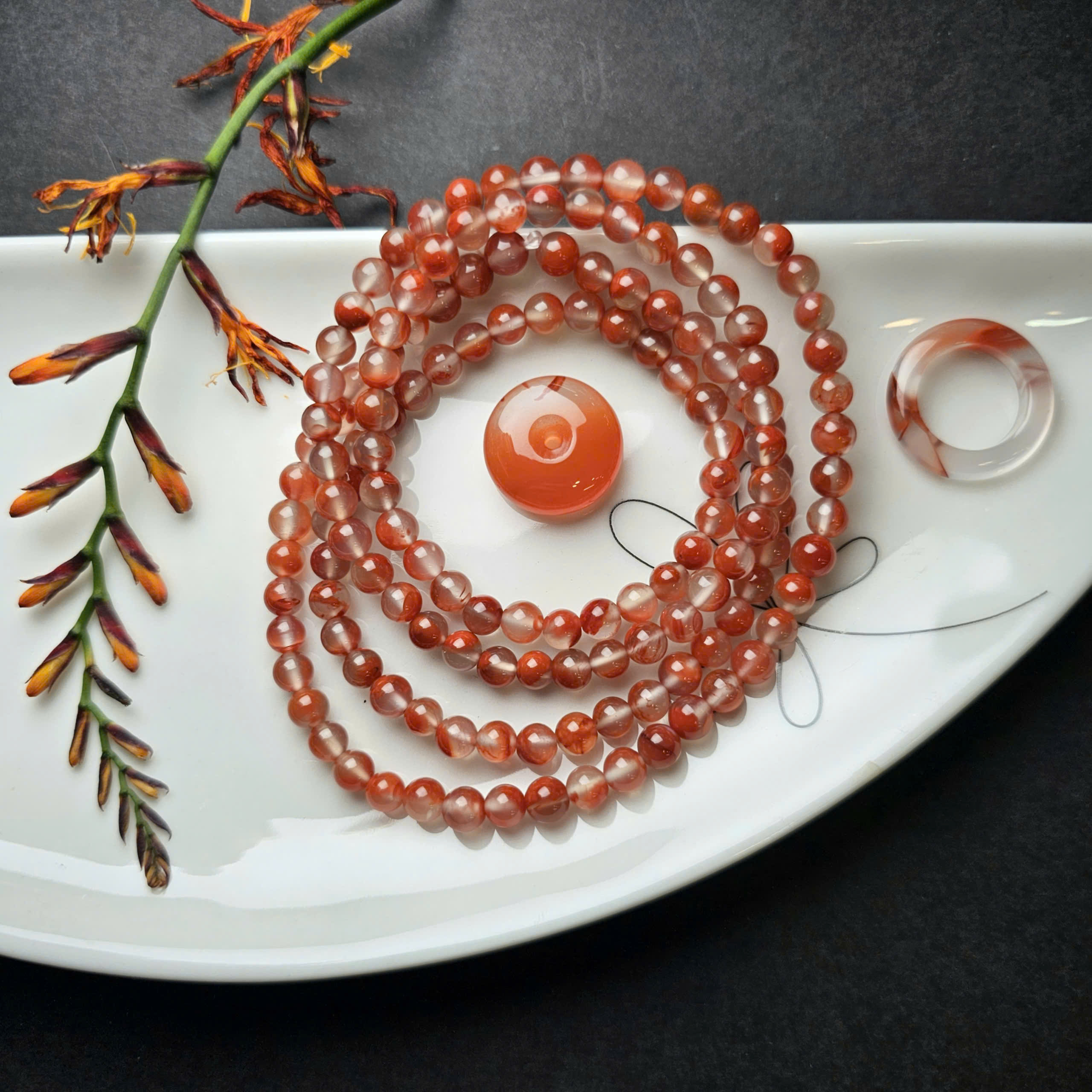 Chuỗi Nam hồng hoa bay cuốn 4 nền đỏ cam tươi đẹp. Hạt 5.2 – 5.4ly.