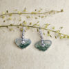 Khuyên tai móc treo đính Sapphire và khấu ngọc Jadeite nếp băng hoa bay.