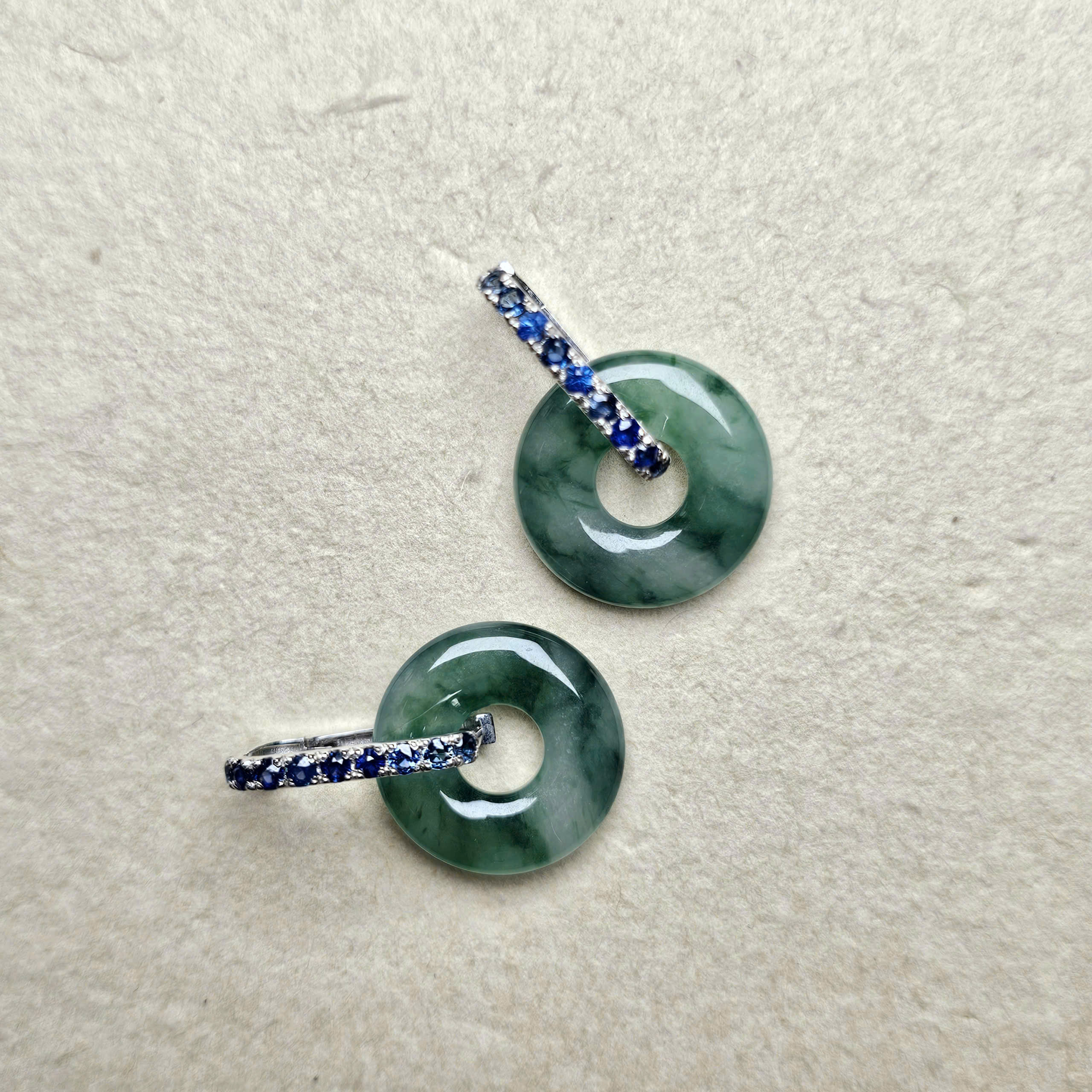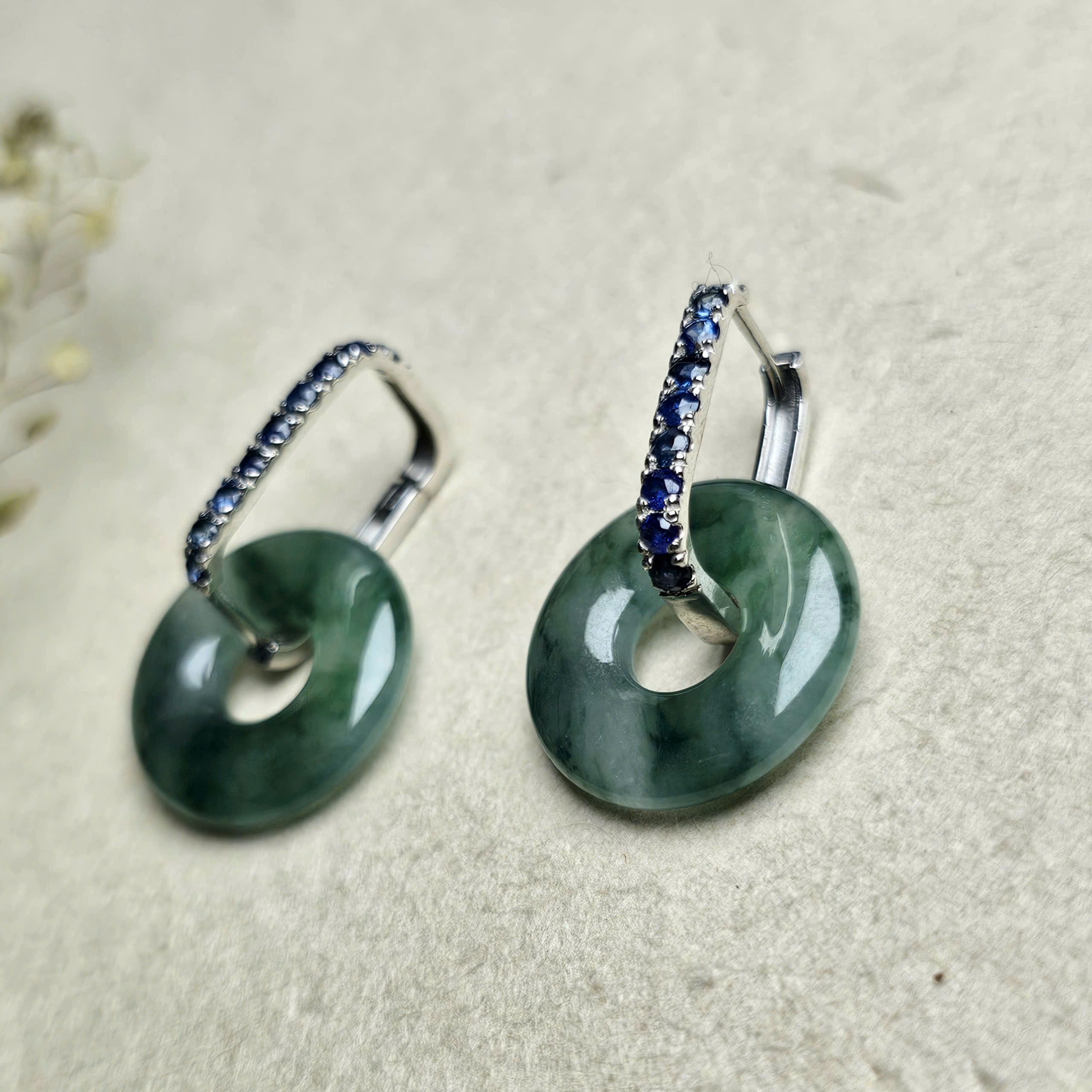 Khuyên tai móc treo đính Sapphire và khấu ngọc Jadeite