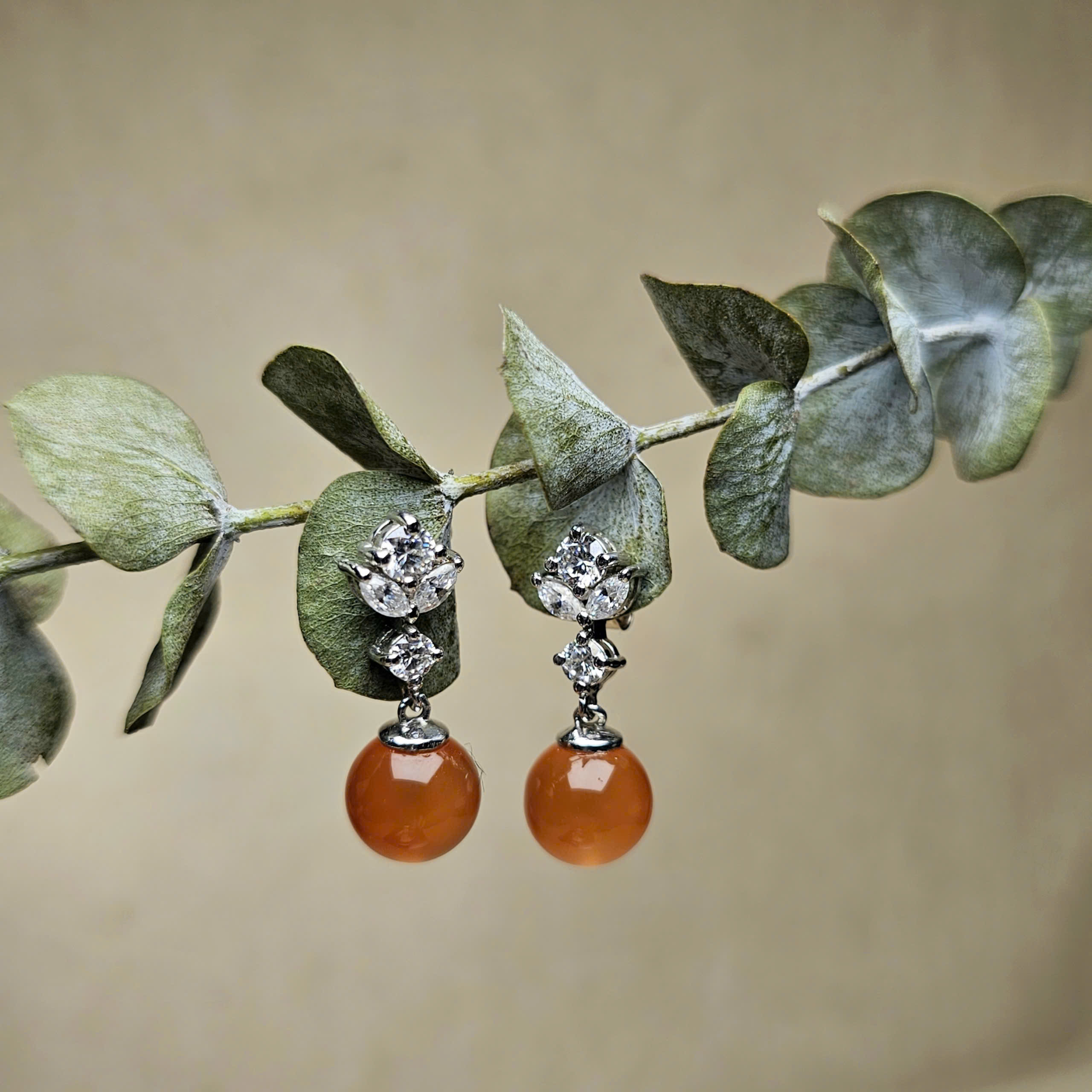 Khuyên tai Nam Hồng băng cam, bạc 925