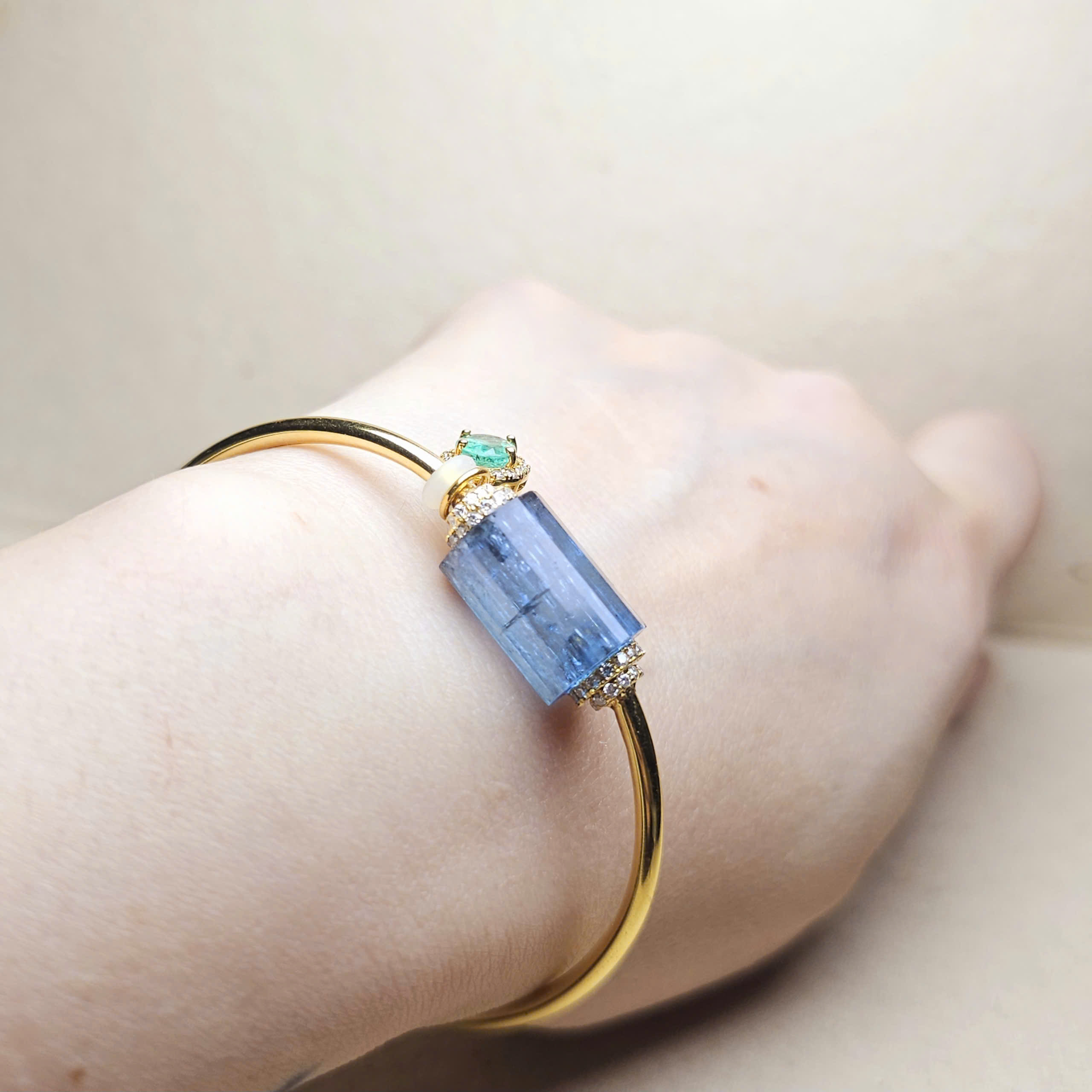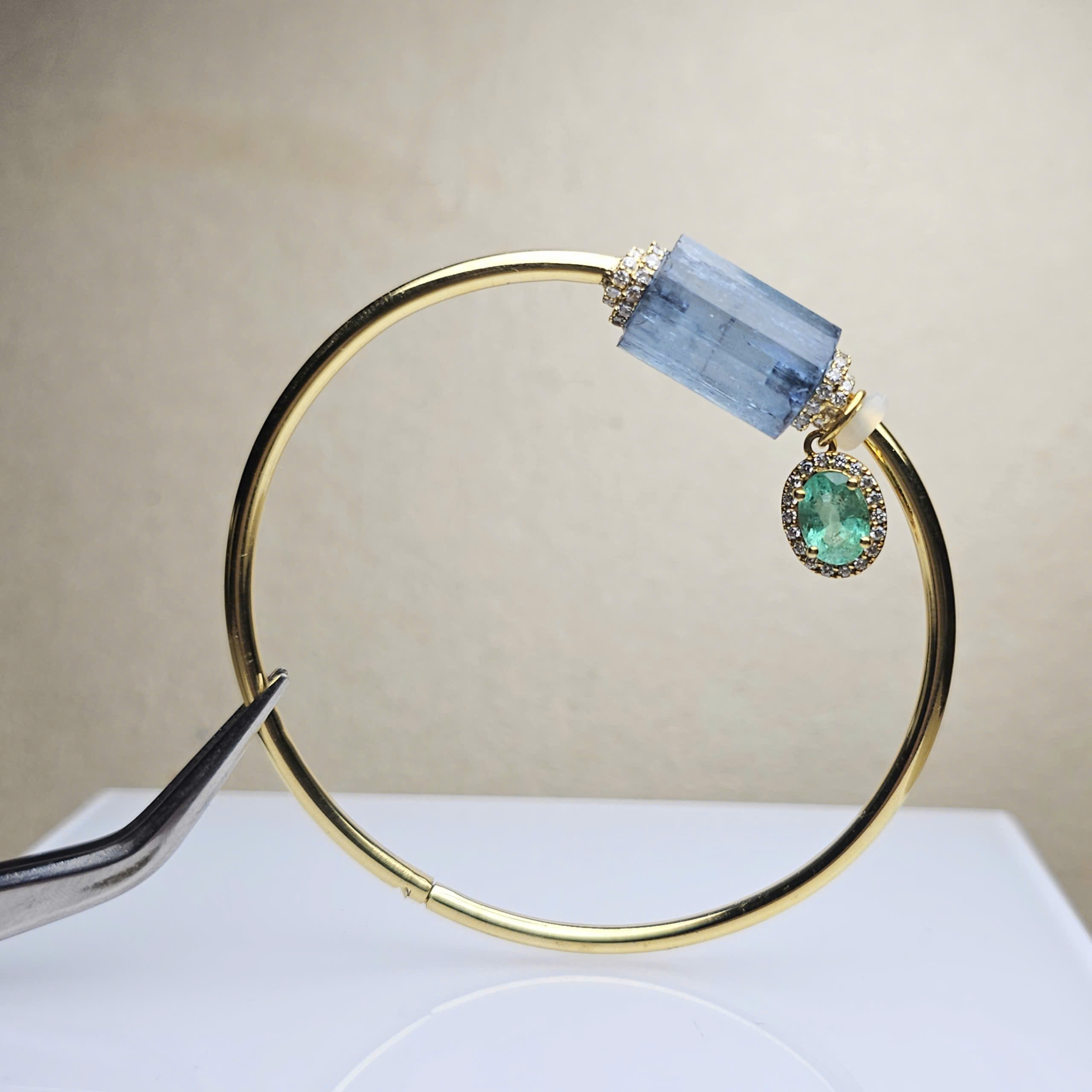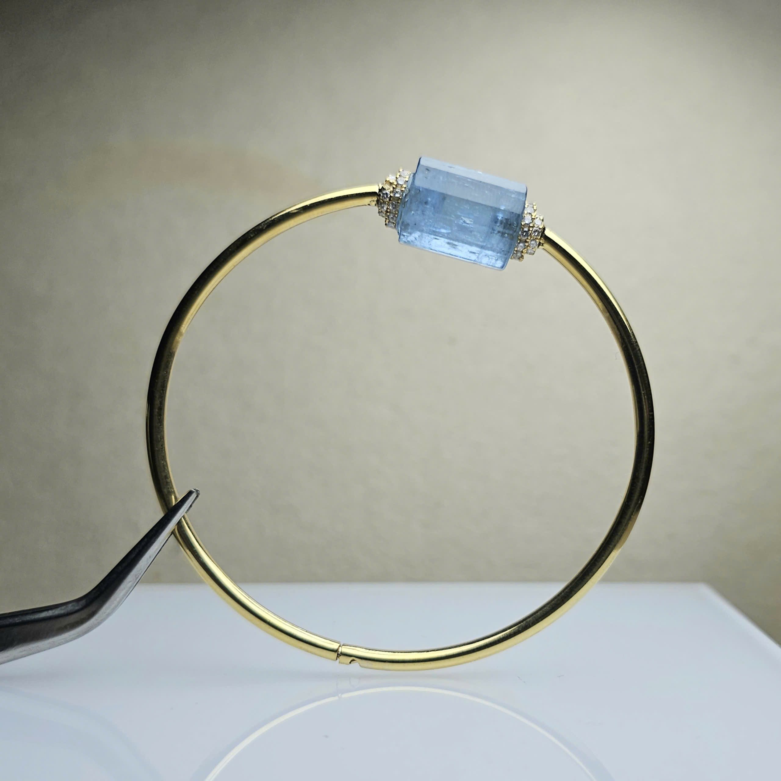 Kiềng tay vàng 10k và Aquamarine Thanh Hóa tự nhiên không xử lý.