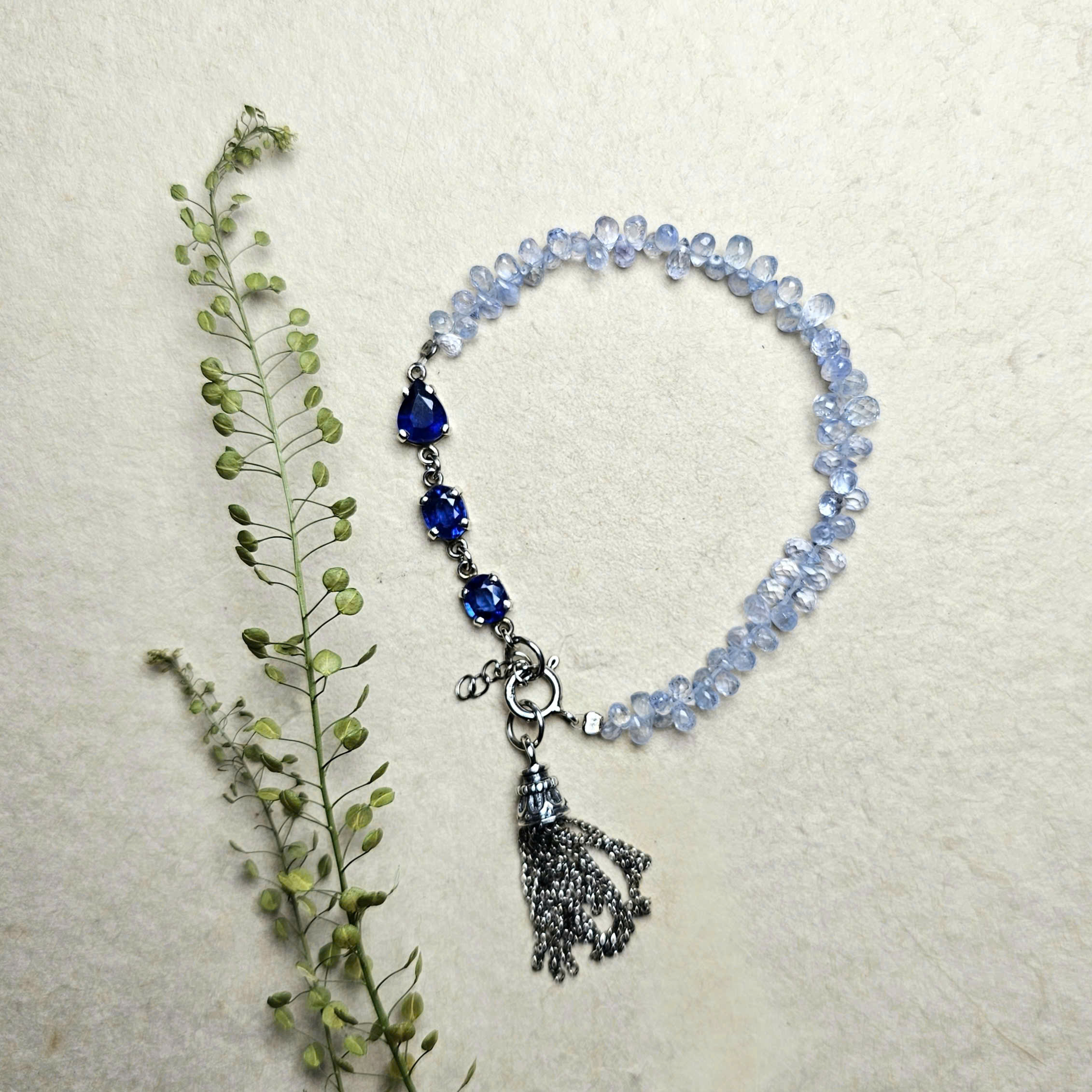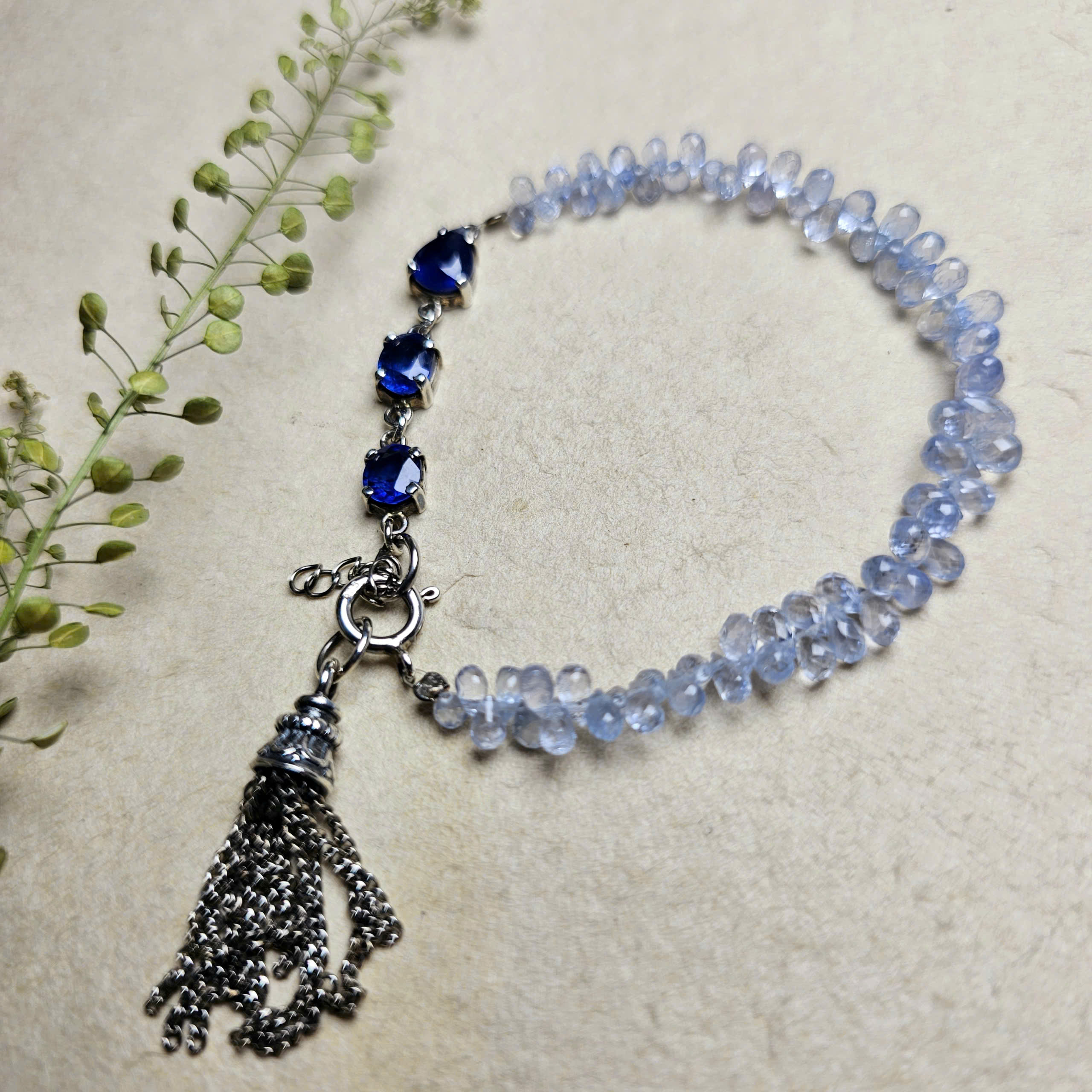Lắc tay Sapphire hạt mài giọt nước mix hạt mài facet. Charm và khóa bạc 925.