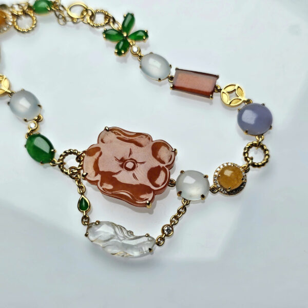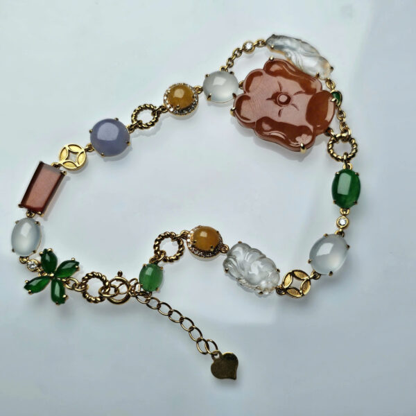 Lắc vàng 18k và phỉ thúy Jadadite type A đa sắc.