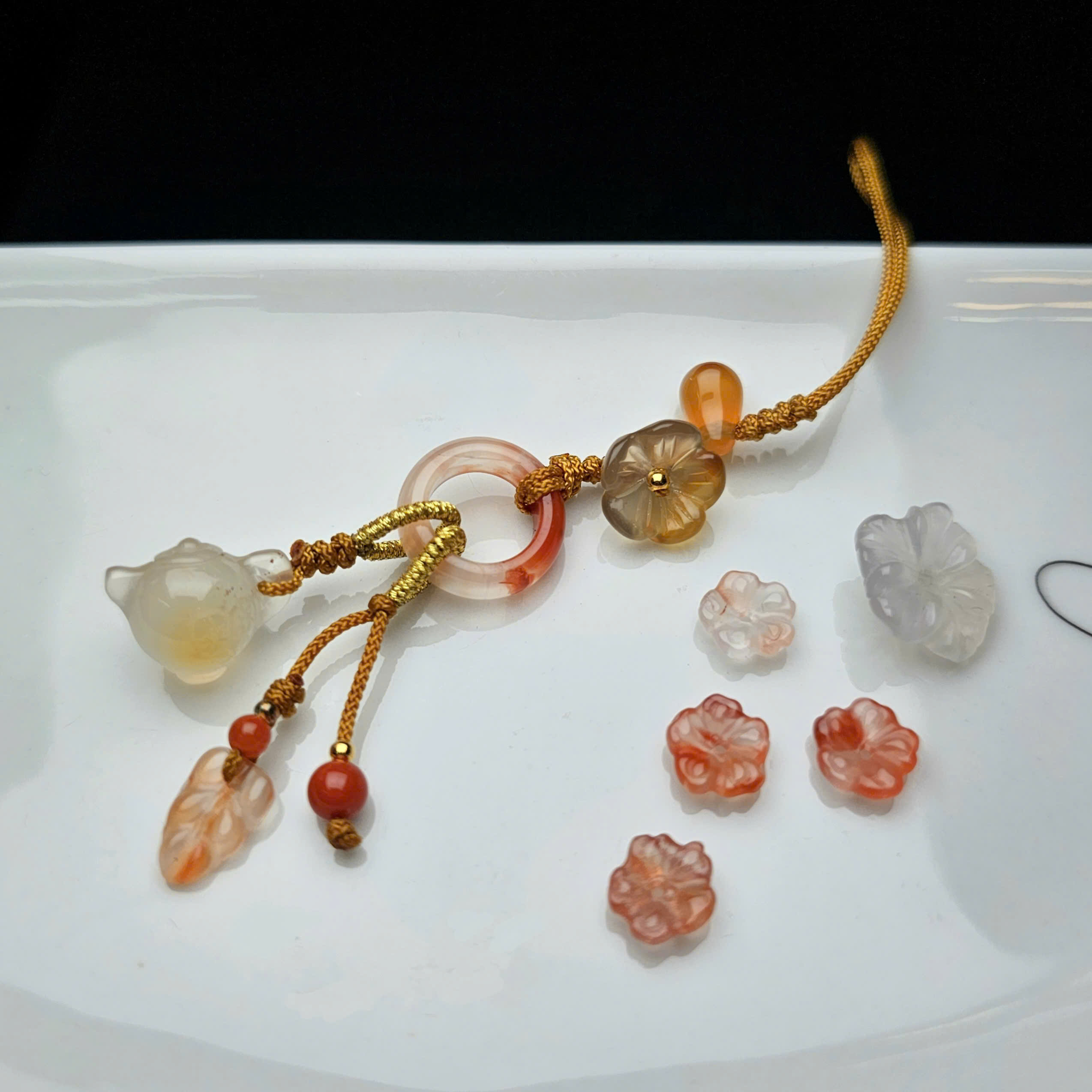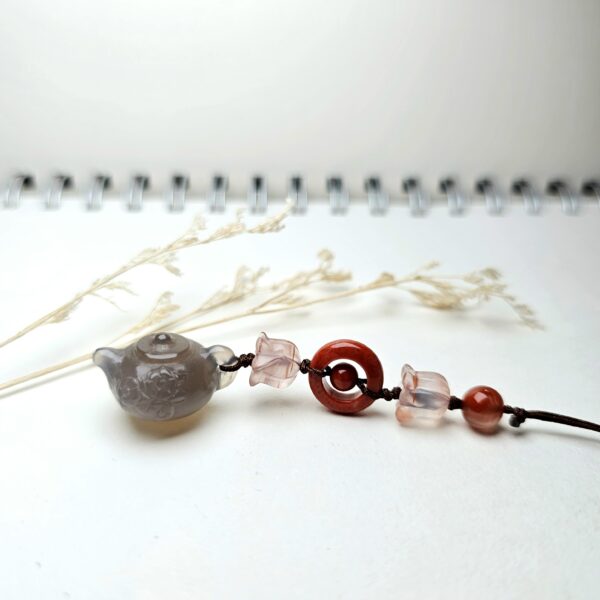 Móc treo ấm trà mã não mix lá và hoa. Có thể chuyển thành treo túi.