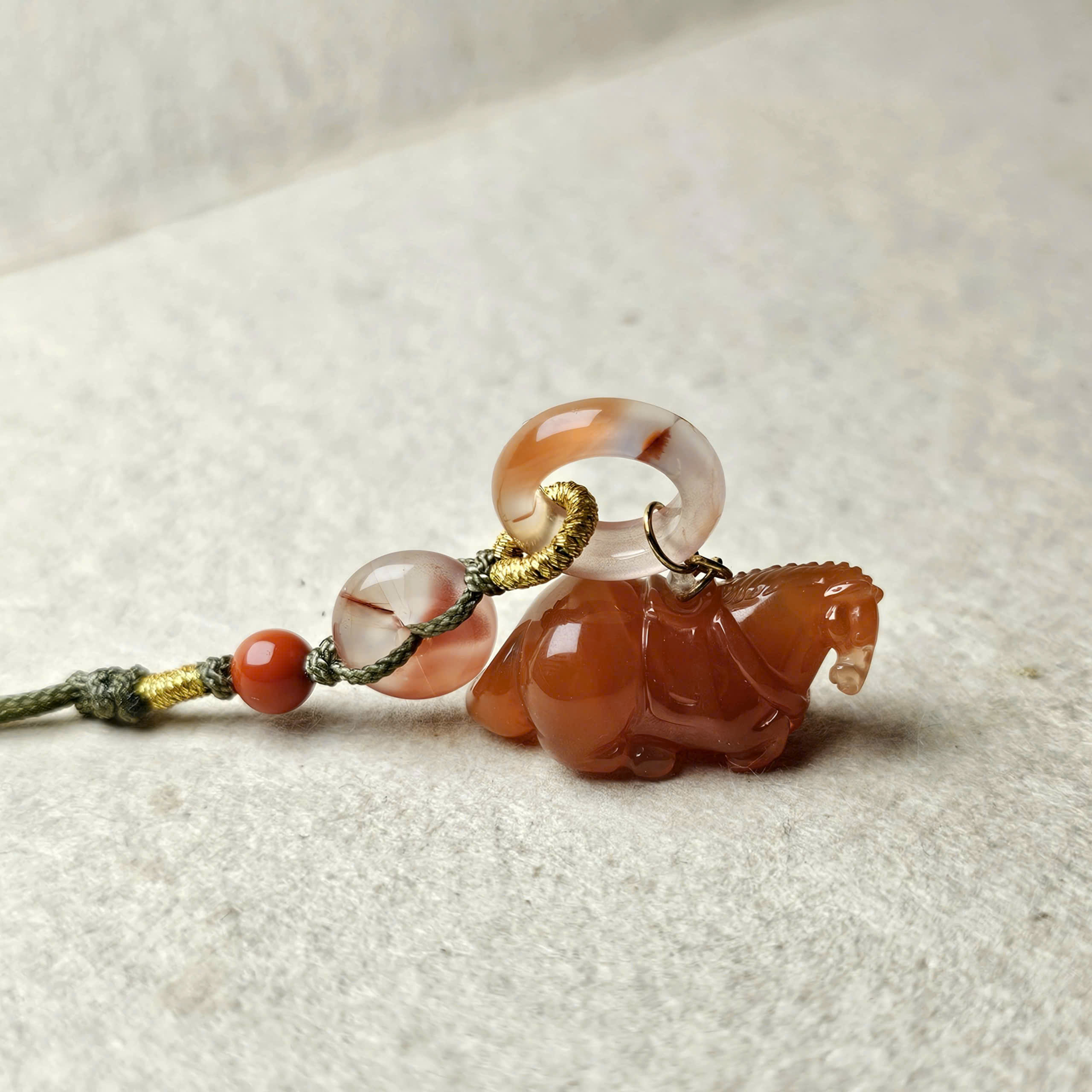 Móc treo điện thoại ngựa Nam Hồng Bảo Sơn, biểu tượng của “mã đáo thành công”, kết hợp cùng khấu Nam Hồng Tứ Xuyên
