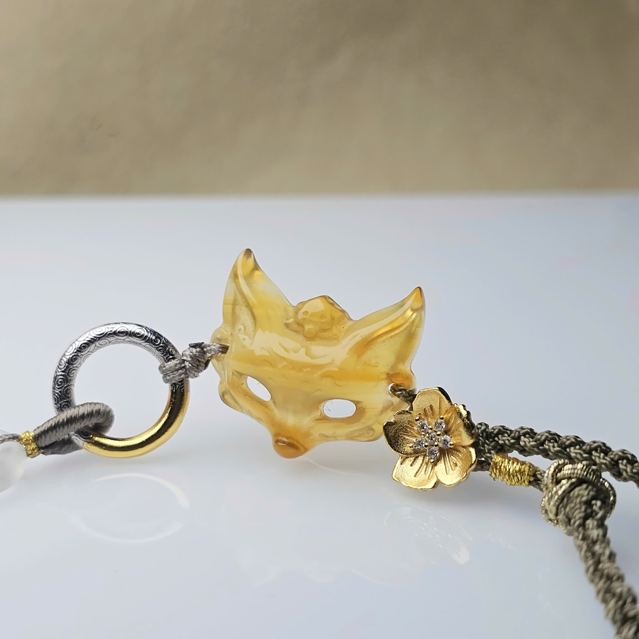 Móc treo hồ ly vàng mã não mix cùng bạc 925 mạ vàng