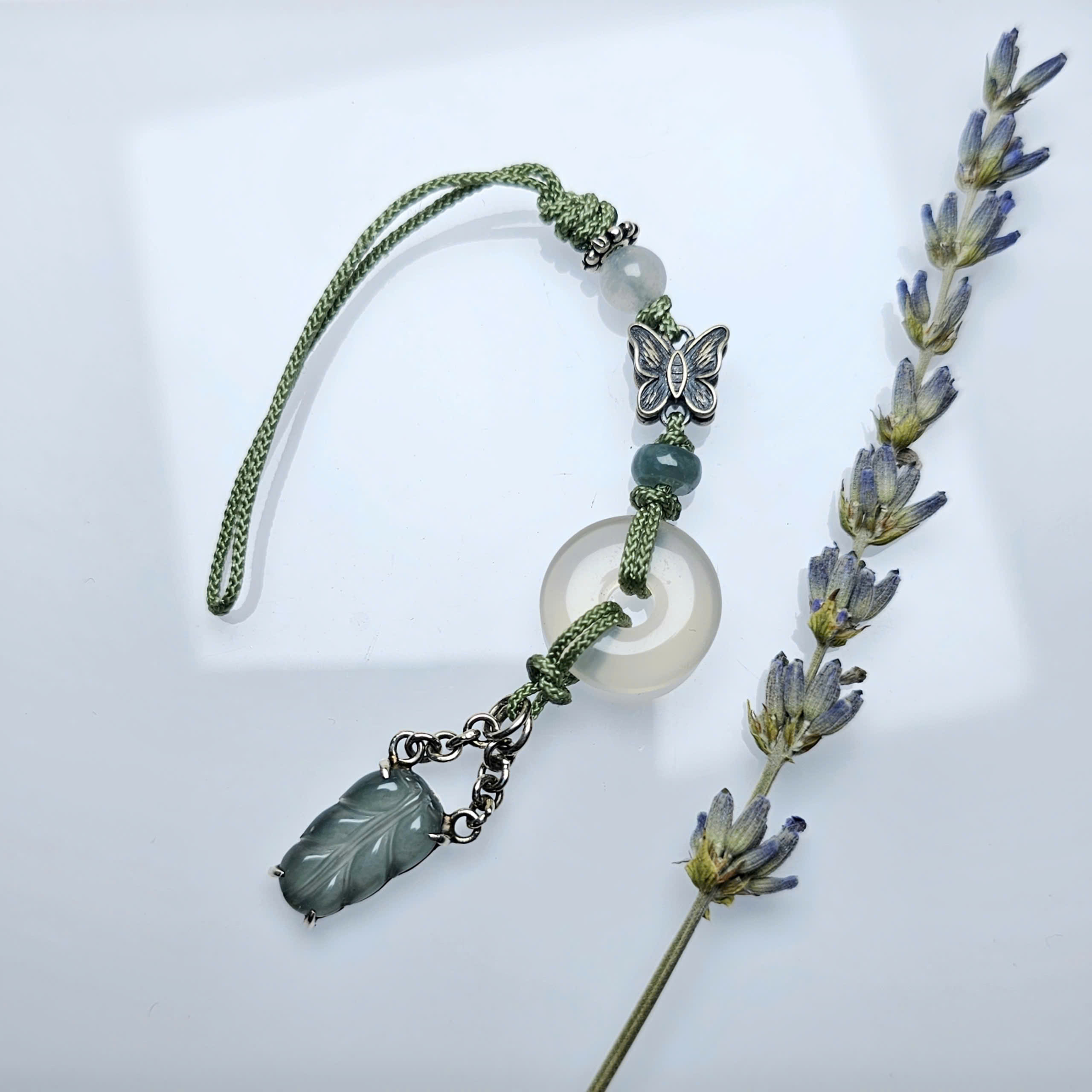 Móc treo lá ngọc Jadeite, khấu mã não và bạc