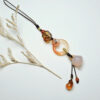 Móc treo mèo béo ôm cá Mã não mix ngọc và khấu nam hồng bình an, tài lộc. Có thể chuyển thành móc treo túi.