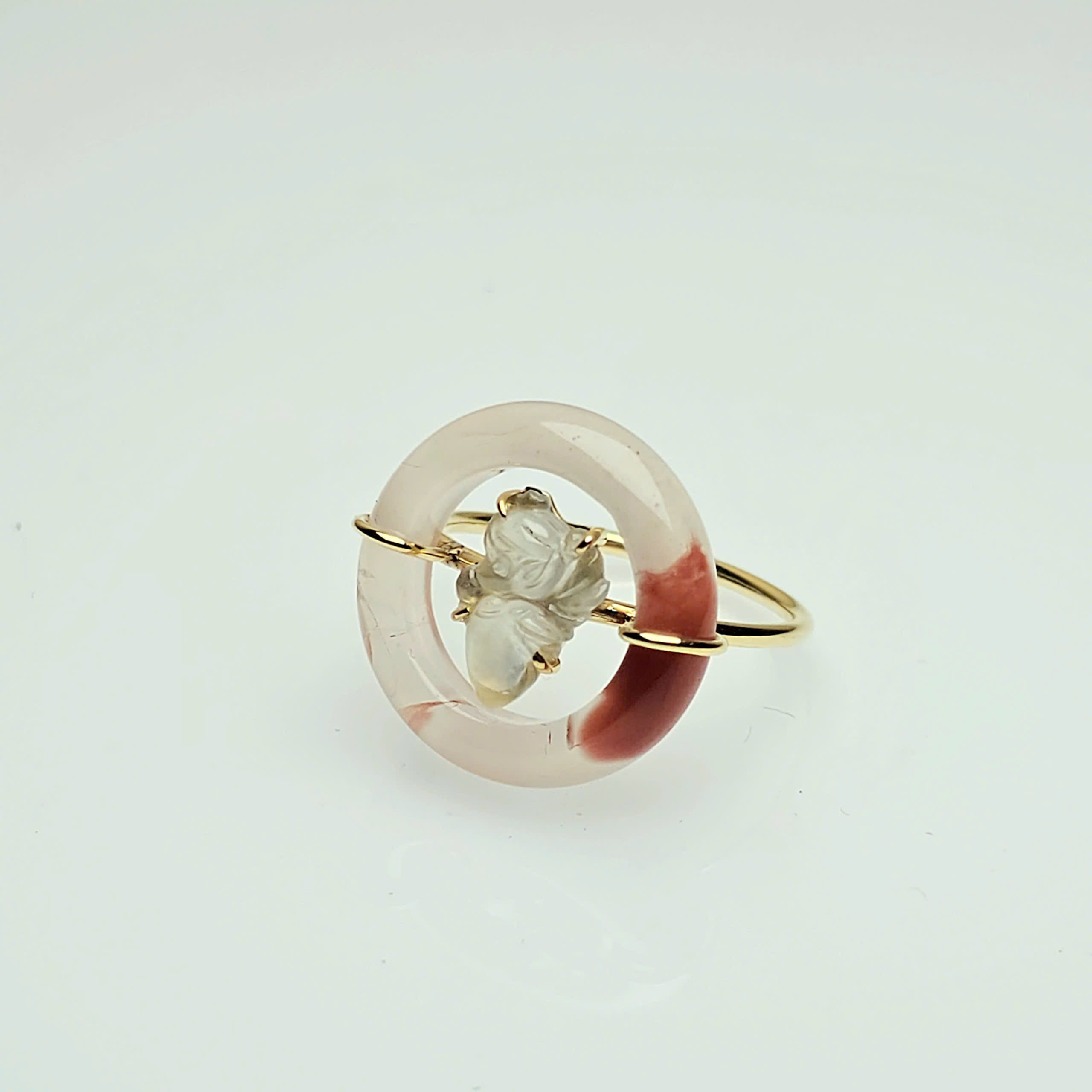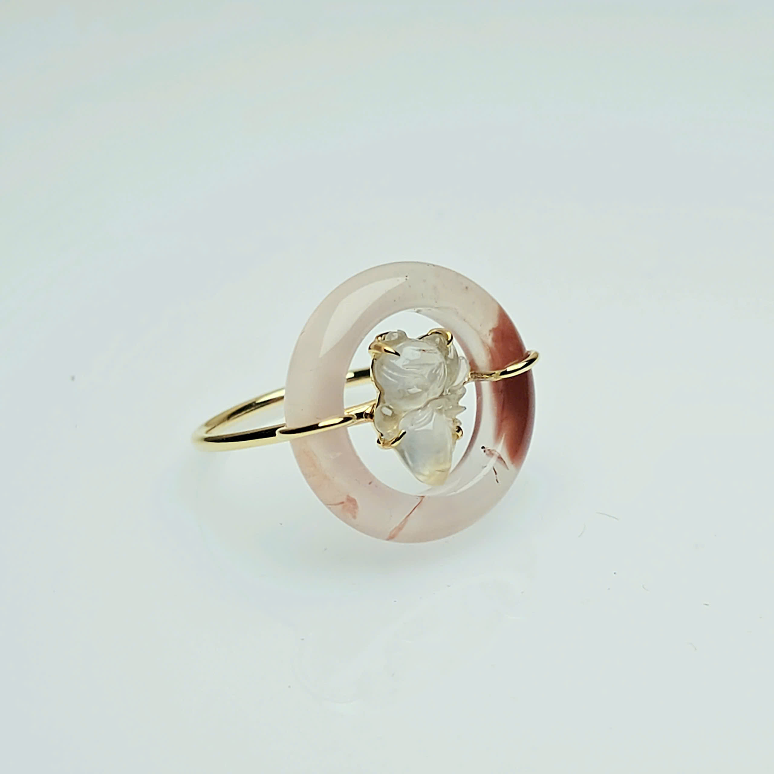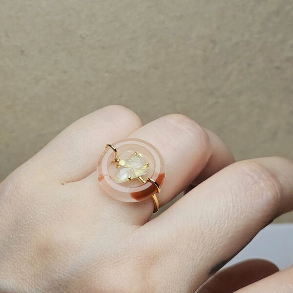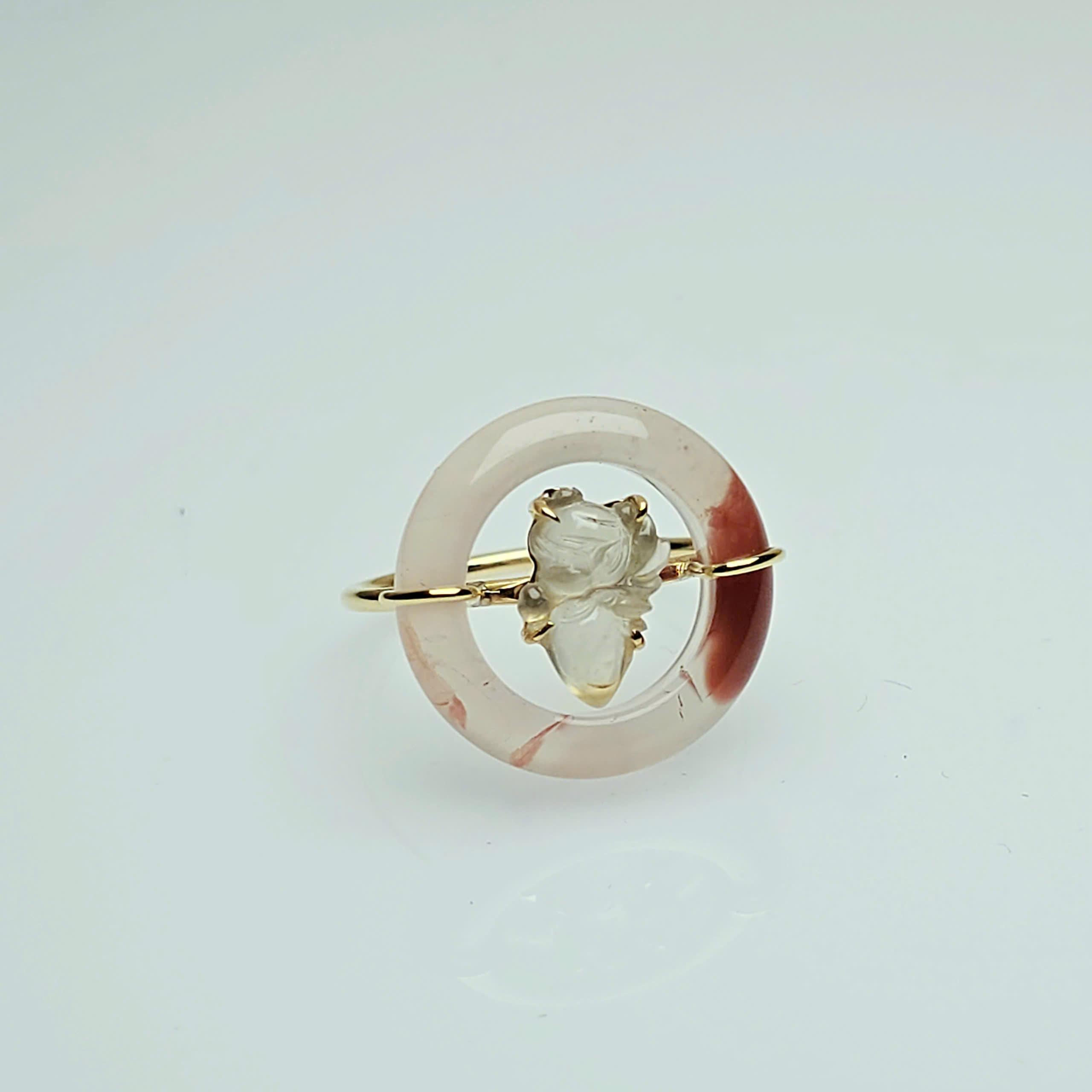Nhẫn thiên thần băng ngọc Jadeite type A và khấu Nam Hồng vàng 10k