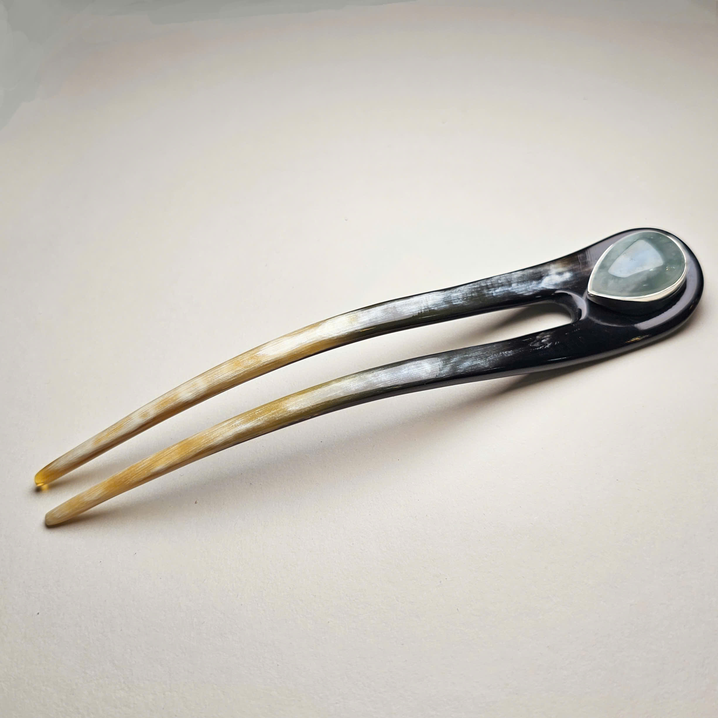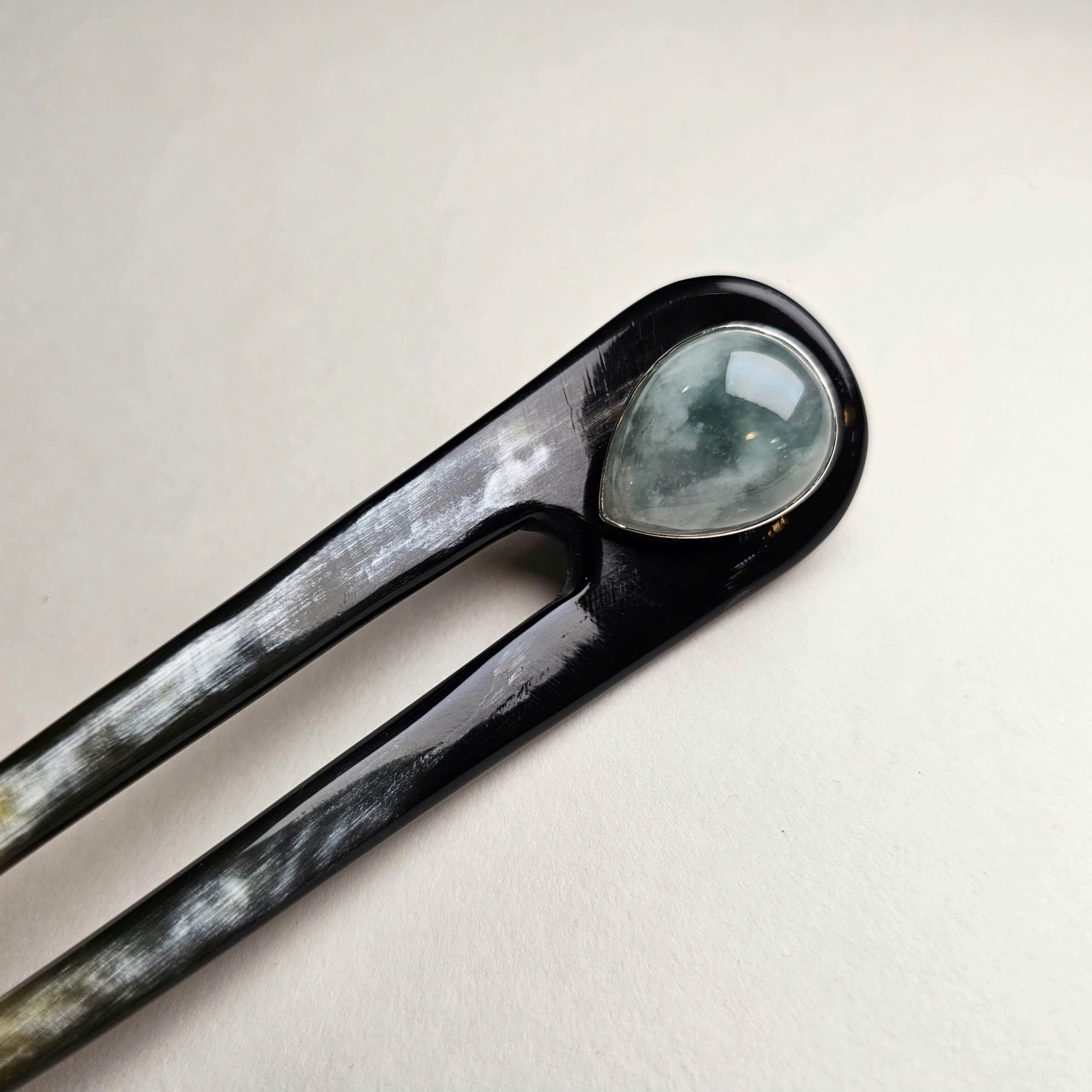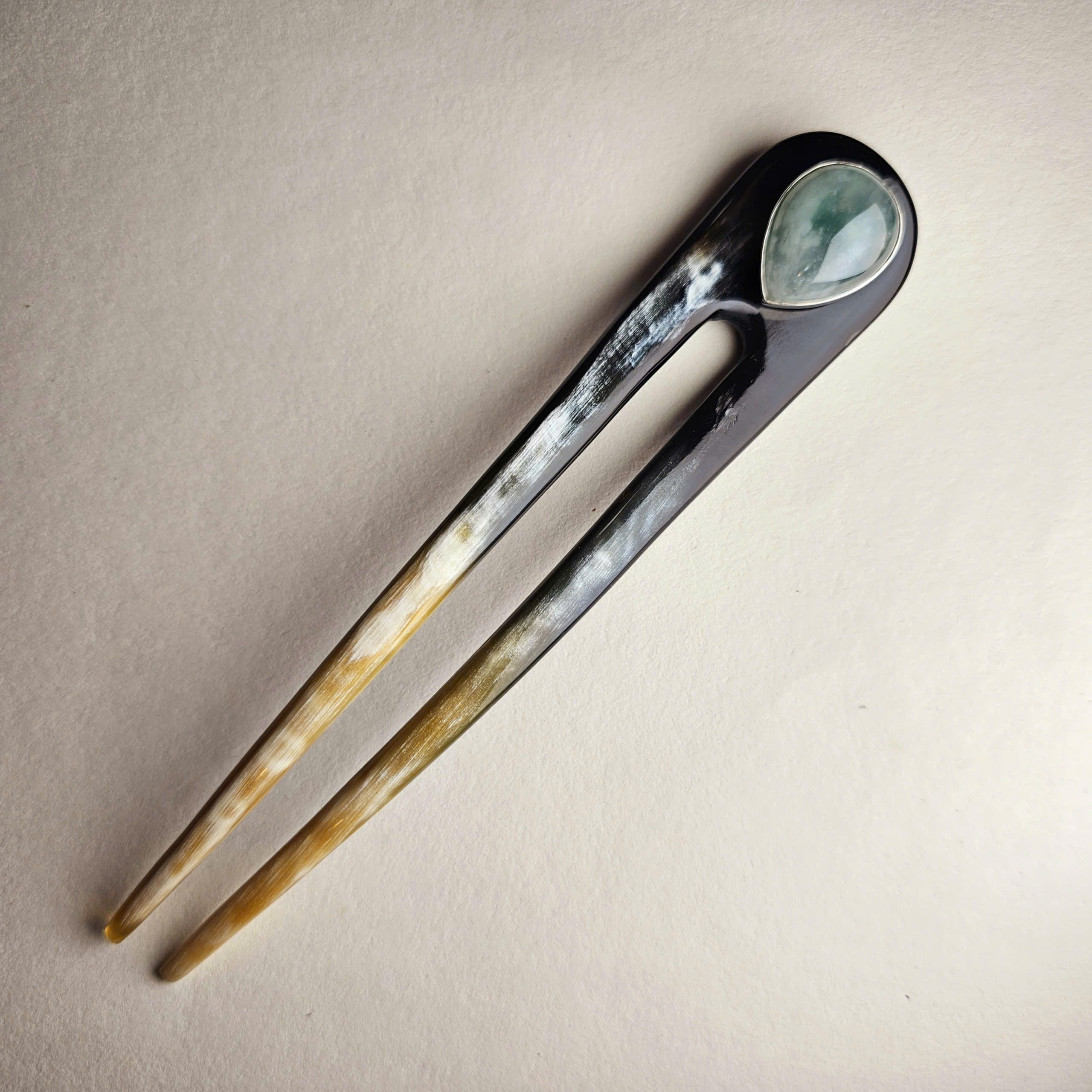 Trâm sừng trâu gắn Ngọc Jadeite type A khung bạc