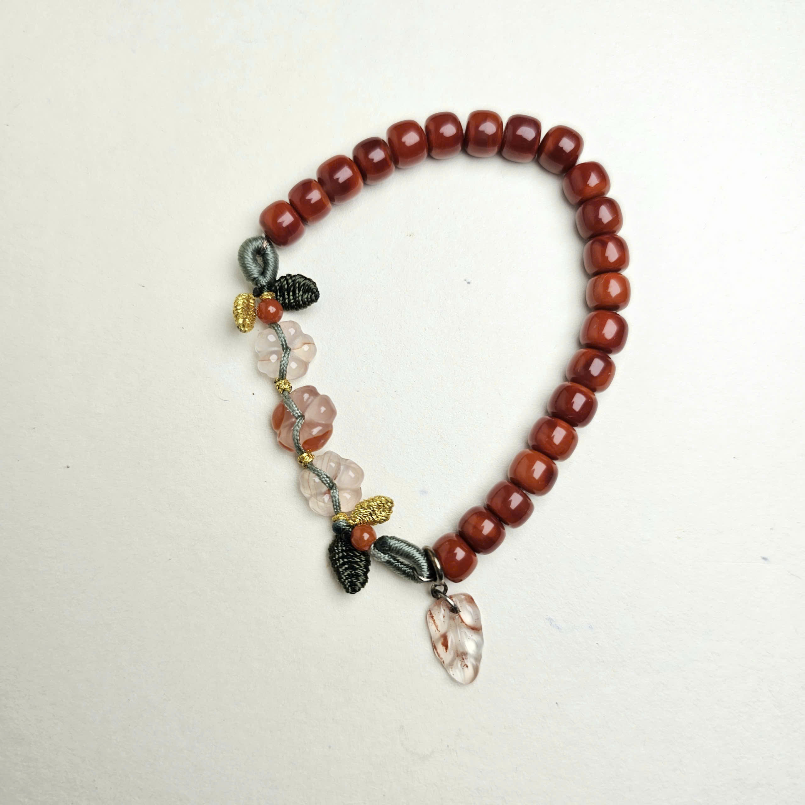 Vòng Nam Hồng đỏ đặc đậm Tứ Xuyên mix hoa. Hạt size 6.3, giá có thể xê dịch tùy size tay