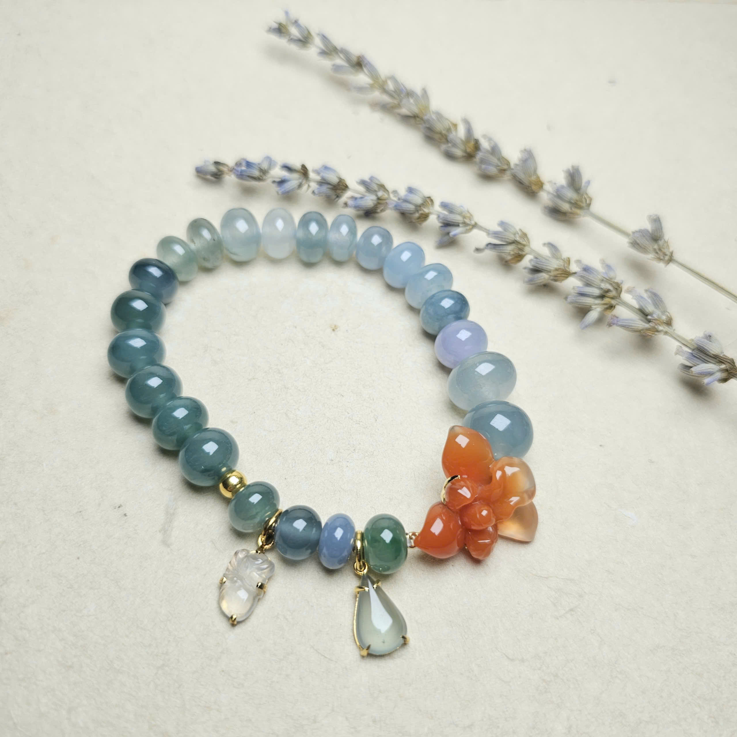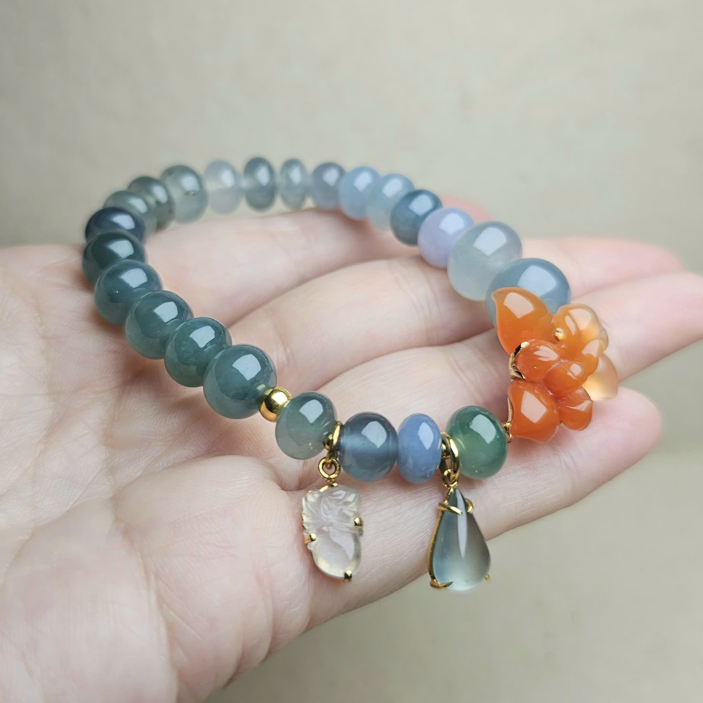 Vòng ngọc phỉ thúy đa sắc mix charm hoa lan Nam Hồng Bảo Sơn