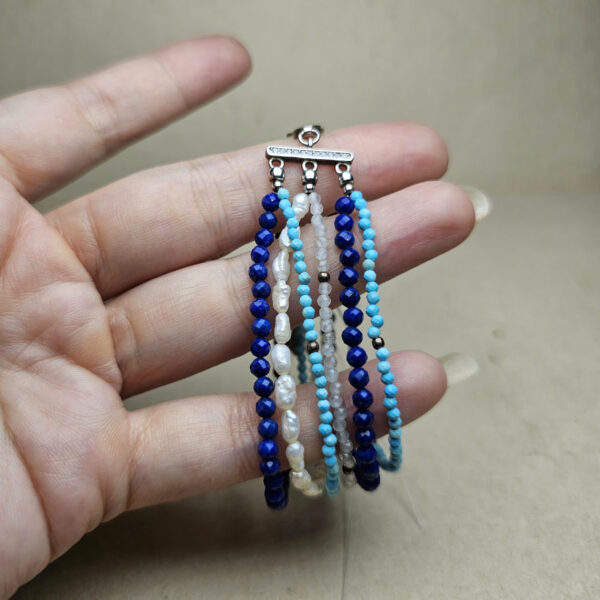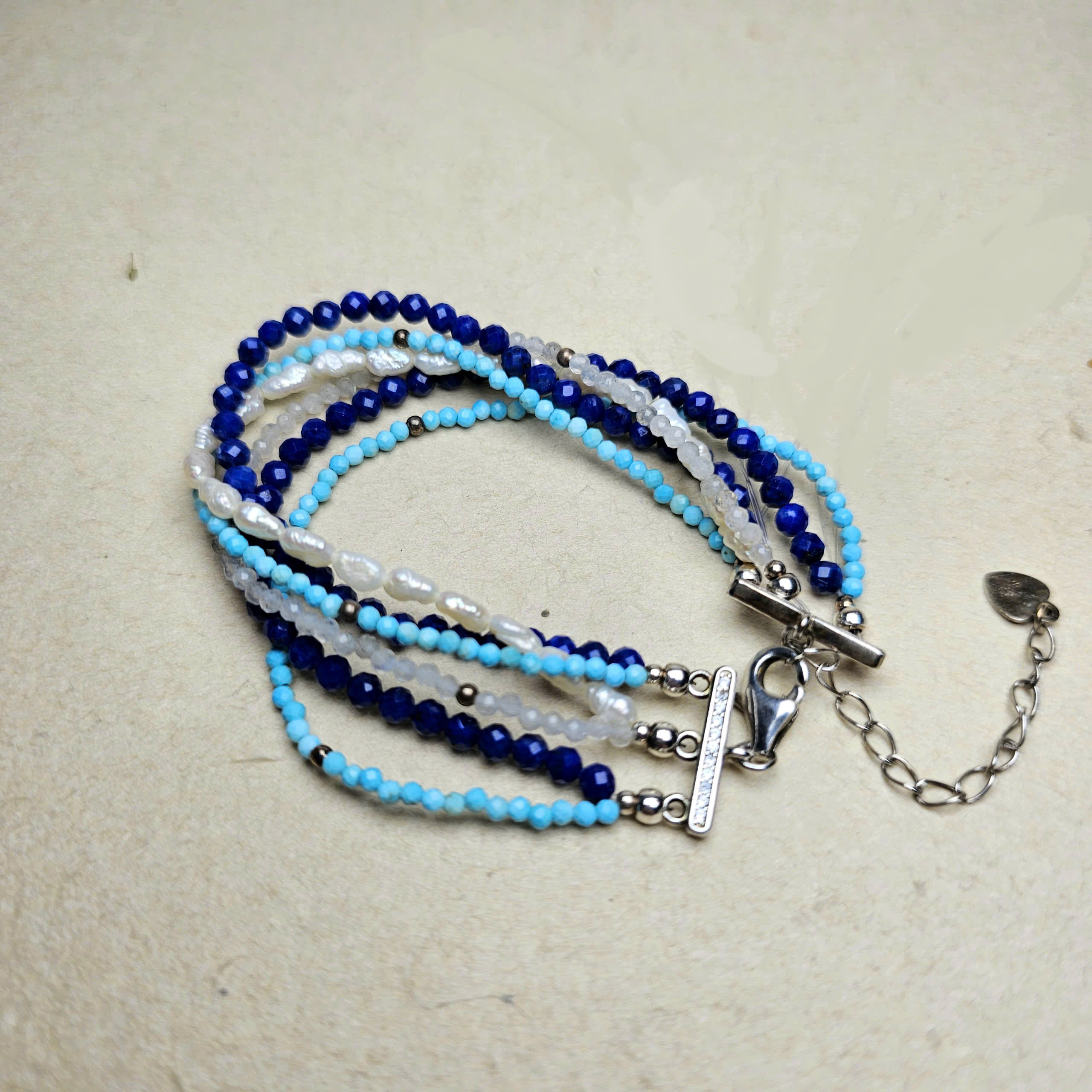 Vòng tay lapiz, ngọc trai, turquoise, moonstone nhiều line. Khóa và bi bạc S925
