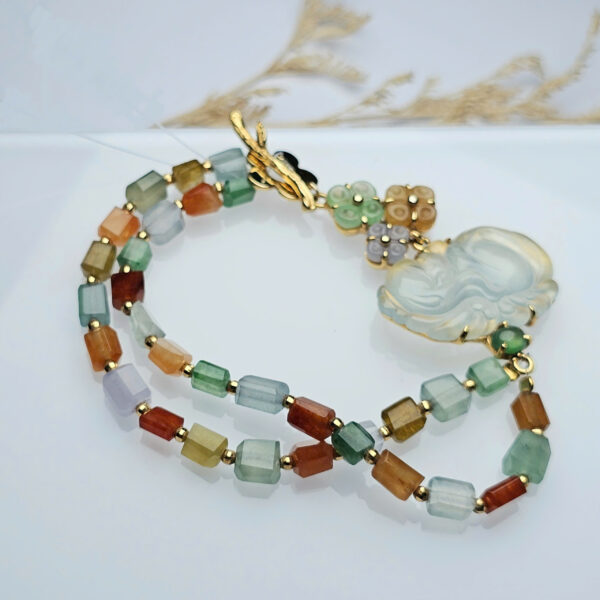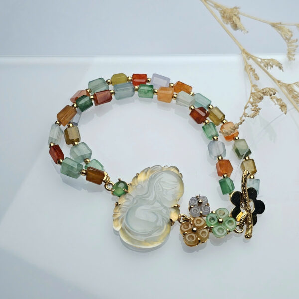 Vòng tay thiên thần tạc từ cao băng ngọc Jadeite mix ngọc tông màu kẹo ngọt.
