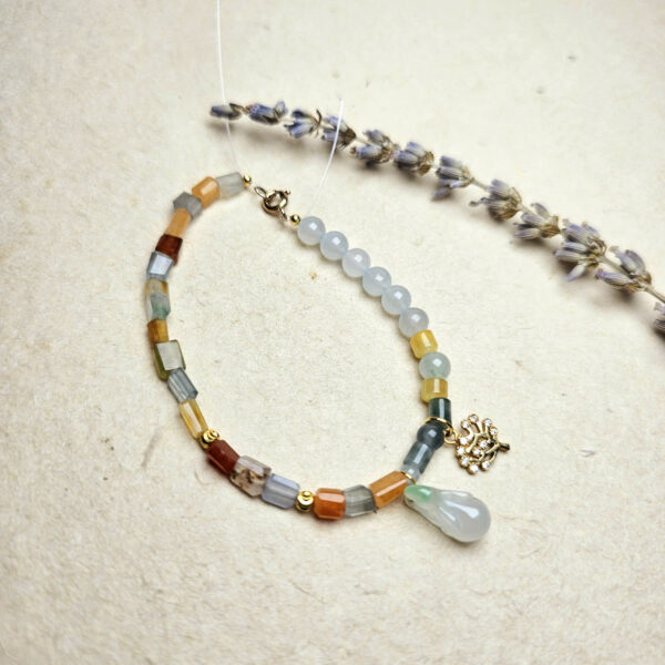 Vòng ngọc phỉ thúy đa sắc mix charm hoa lan Nam Hồng Bảo Sơn